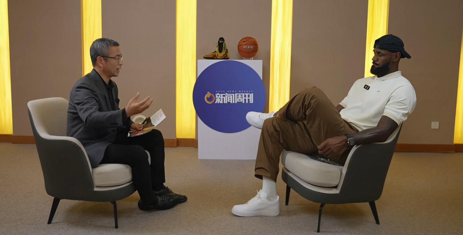 湖人队球星詹姆斯在上海行期间接受了央视《新闻周刊》主持人白岩松的专访。