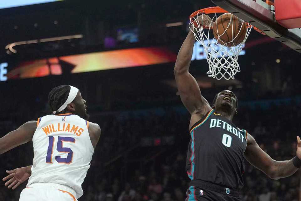 活塞过去两场连赢国王与掘金收获2连胜,太阳上一场主场106-102战胜篮网,本赛季首次交锋活塞主场108-105险胜太阳。本场太阳缺少布克与杰伦-格林,活塞缺少勒维尔。首节双方进攻火力均是极高,太阳前4分半钟19-17领先,之后缠斗至太阳29-28领先。太阳随后继续扩大领先优势,首节结束太阳35-31领先活塞,首节活塞25中14,其中三分7中1,杜伦6中6得到12+5与坎宁安8分4助攻;太阳27中13,其中三分13中6,阿伦12分与狄龙6中3得到9分。