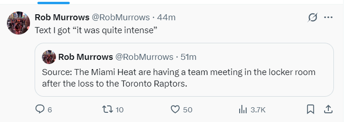 根据NBA记者Rob Murrows的报道,在这场失利后热火队召开了内部的会议,而这个会议的气氛非常紧张。