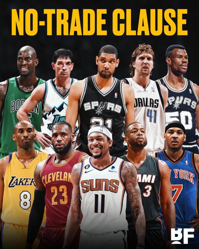 NBA历史上,拥有完整交易否决权的,其实只有10人:大卫-罗宾逊、斯托克顿、诺维茨基、邓肯、科比、加内特、韦德、安东尼、詹姆斯,还有比尔。